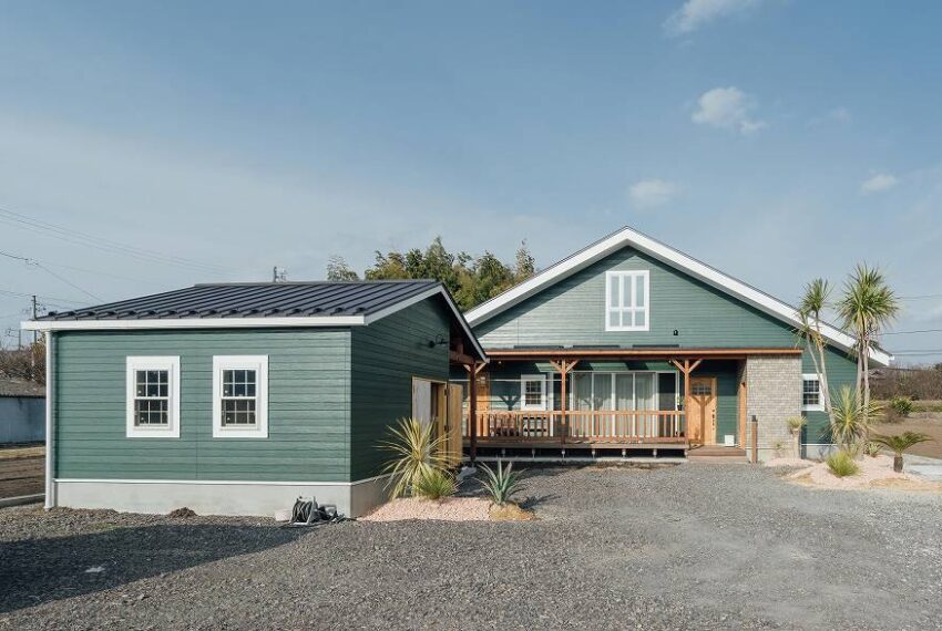 - 広いカバードポーチとバイクガレージのあるアメリカンリゾートハウス